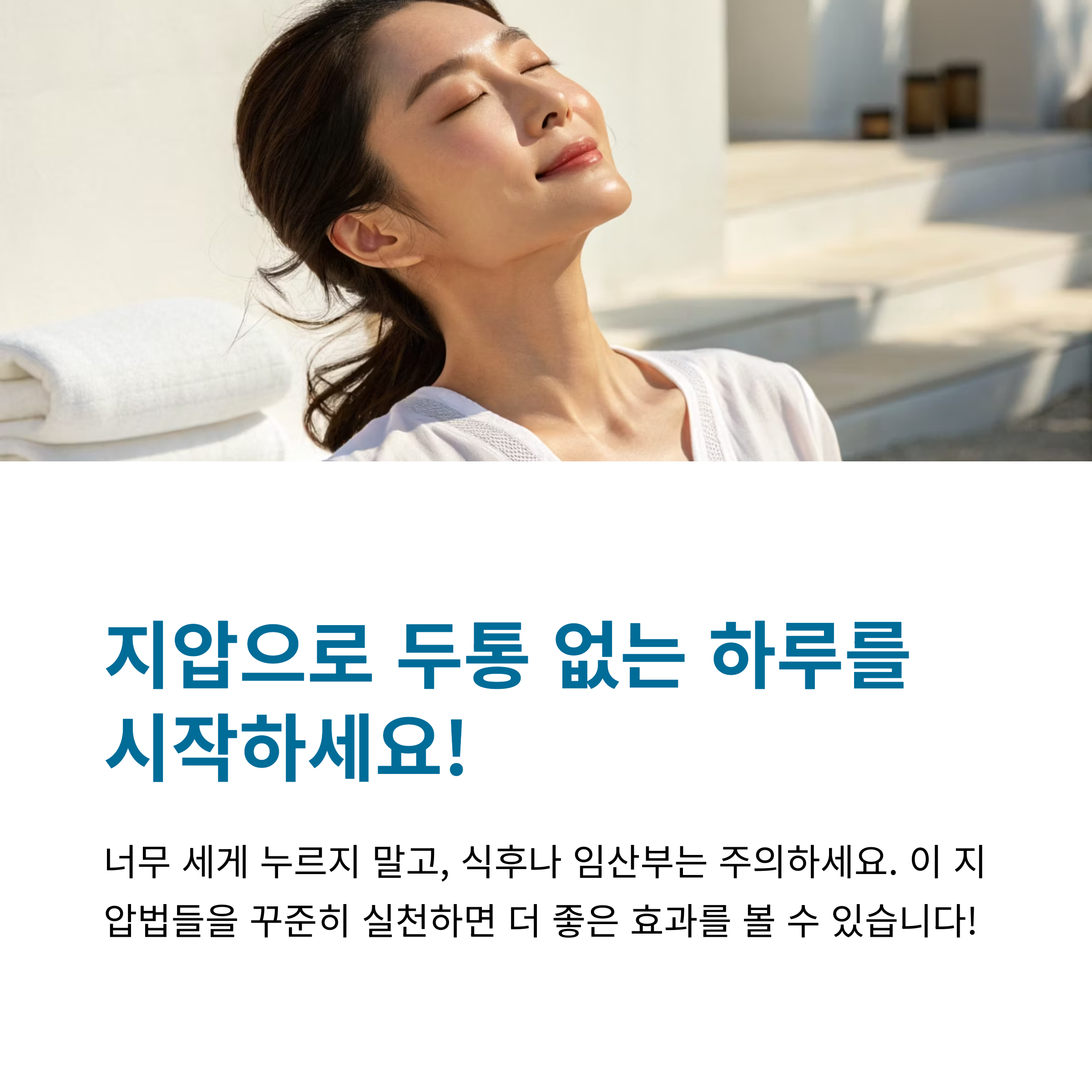 여러분, 약 없이도 두통을 완화할 수 있는 방법이 있다는 거, 알고 계셨나요? 바로 지압이에요!