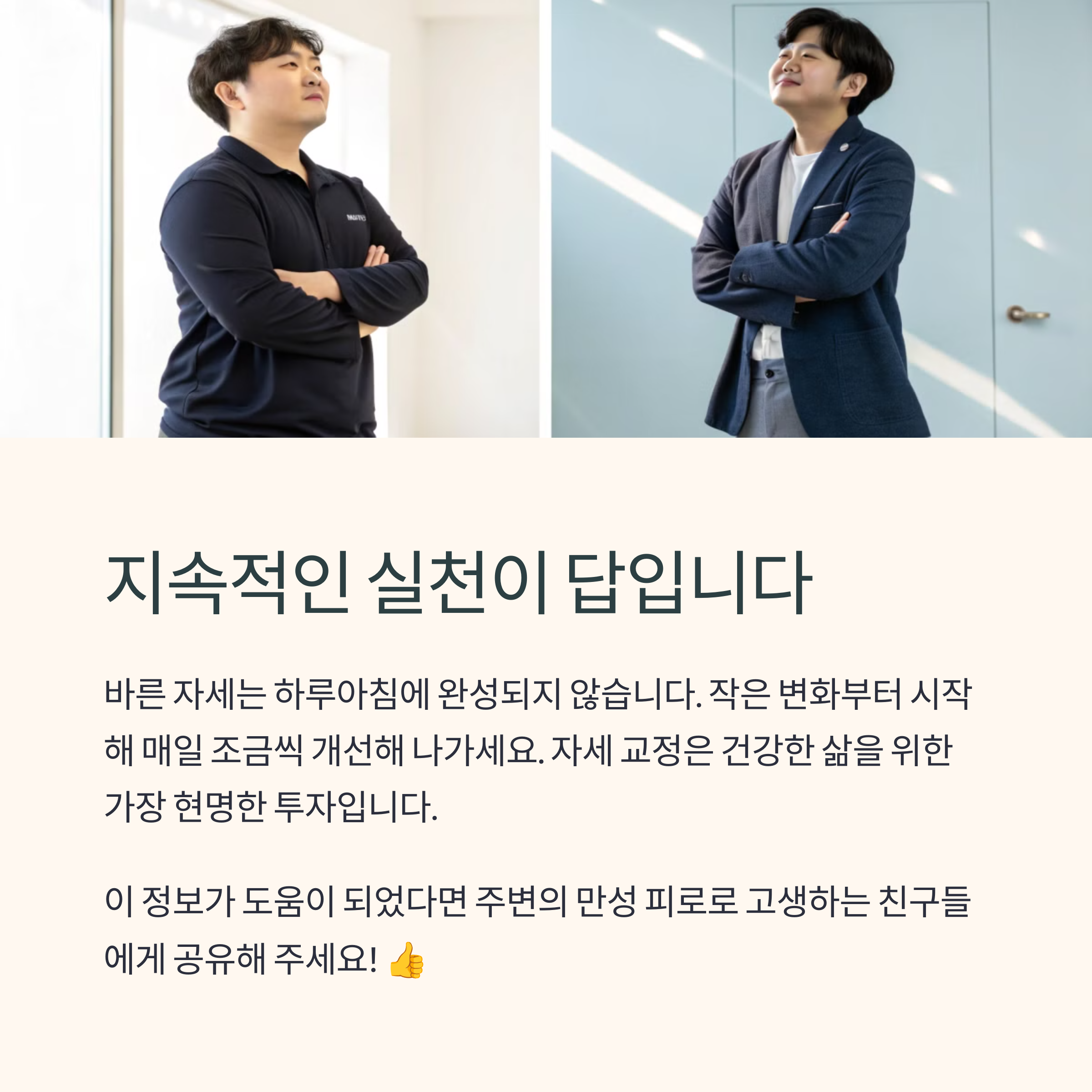 이 글에서는 잘못된 자세가 불러오는 만성피로의 원인을 명확히 짚고, 이를 개선하기 위한 현실적이고 효과적인 자세 교정 및 생활습관 설루션을 전문가 시선에서 안내해 드리겠습니다.