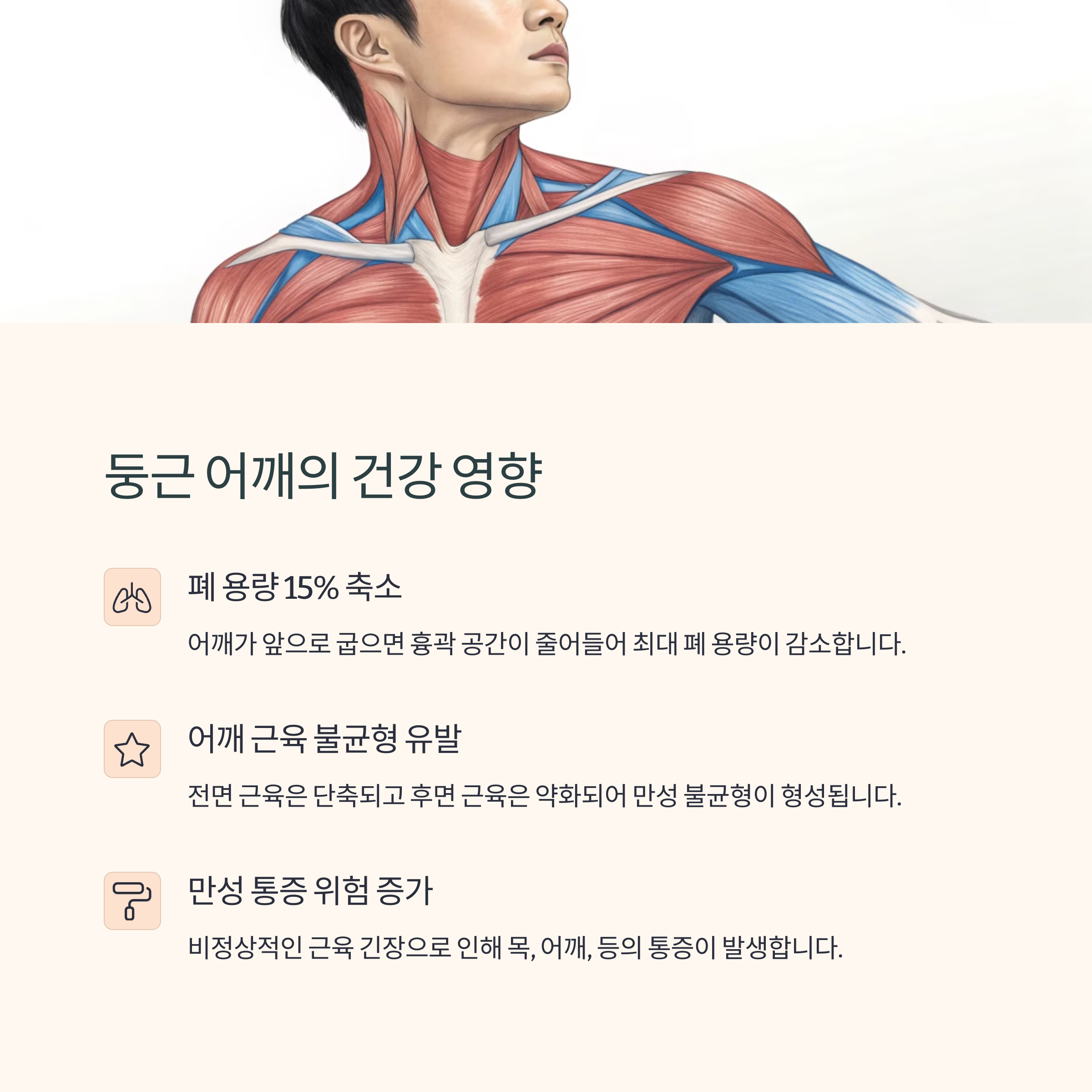 잘못된 자세는 신체 전체의 밸런스를 무너뜨립니다. 특히 목이 앞으로 나오는 거북목, 어깨가 말린 둥근 어깨, 허리가 과도하게 꺾인 자세 등은 근육의 긴장과 비효율적인 움직임을 유발합니다. 이로 인해 에너지 소모는 늘어나지만 실제 퍼포먼스는 떨어지며, 뇌와 장기까지 산소 공급이 원활하지 않아 만성피로로 이어질 수 있습니다.