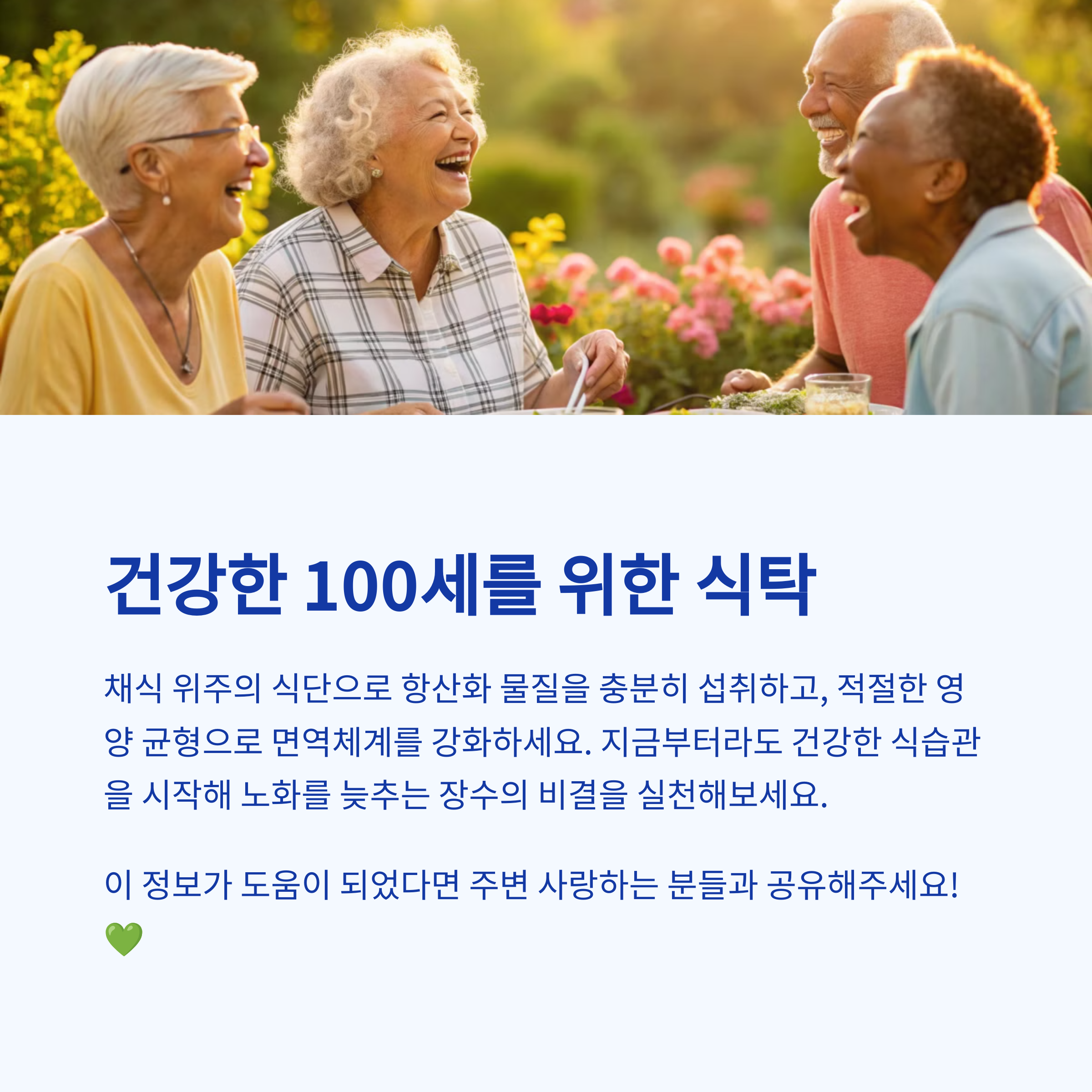 장수는 결코 우연이 아닙니다. 자연과 함께하는 삶, 절제된 식사, 그리고 가족이나 이웃과 함께하는 식문화는 건강한 노화를 위한 중요한 기반이 됩니다.
