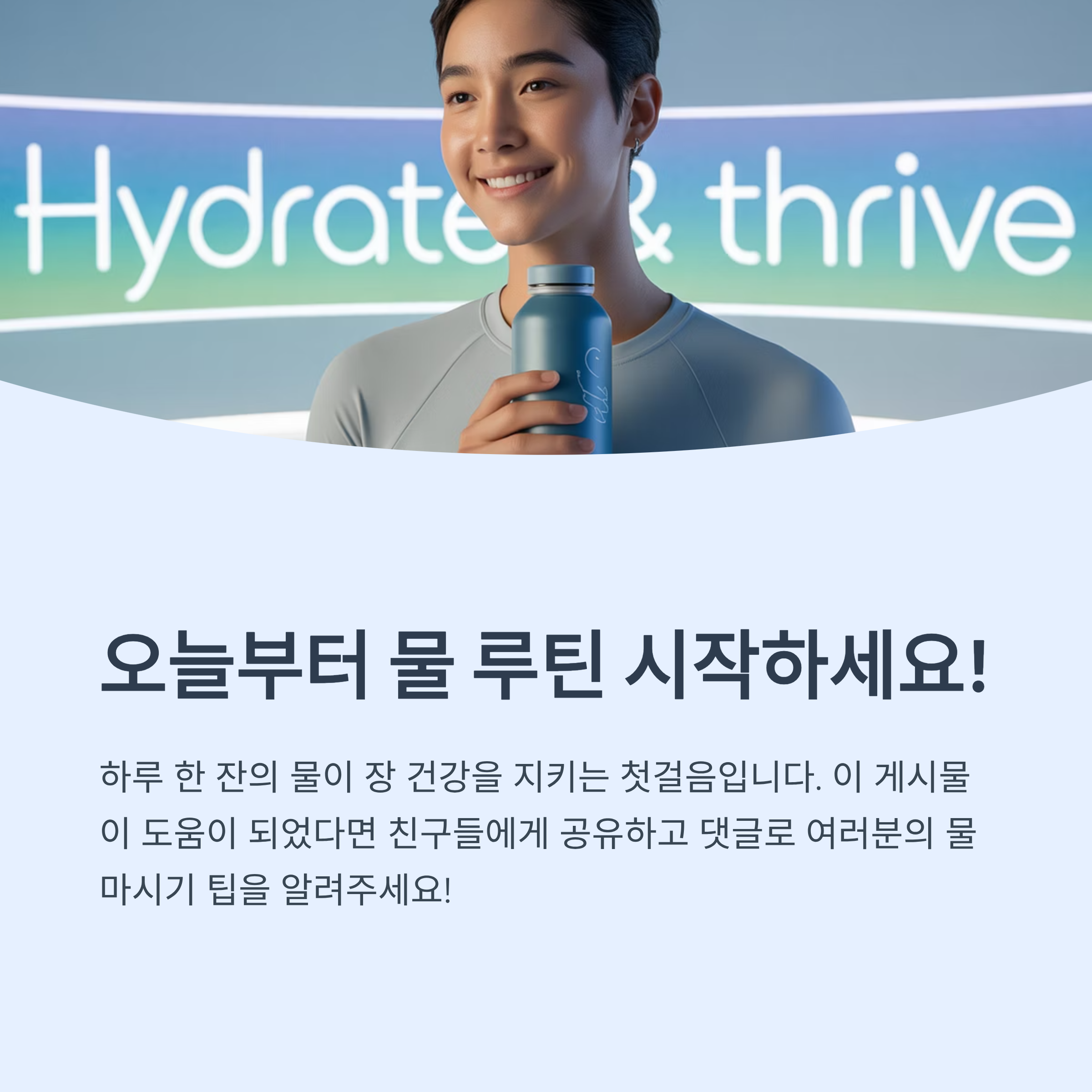 장 건강은 복잡하고 어려운 문제 같지만, 가장 기본적인 ‘물 마시기’ 습관만으로도 놀라운 변화를 만들 수 있습니다. 매일 8잔의 물을 챙겨 마시며, 저는 몸과 마음 모두 한결 가벼워졌어요. 처음엔 귀찮고 번거롭게 느껴졌지만, 지금은 오히려 물을 마시지 않으면 허전할 정도랍니다. 여러분도 오늘부터 물 루틴을 만들어보세요. 하루 한 잔의 물이, 내 장 건강을 지키는 작은 첫걸음이 될 거예요. 공감되거나 궁금한 점이 있다면 댓글로 함께 나눠요!