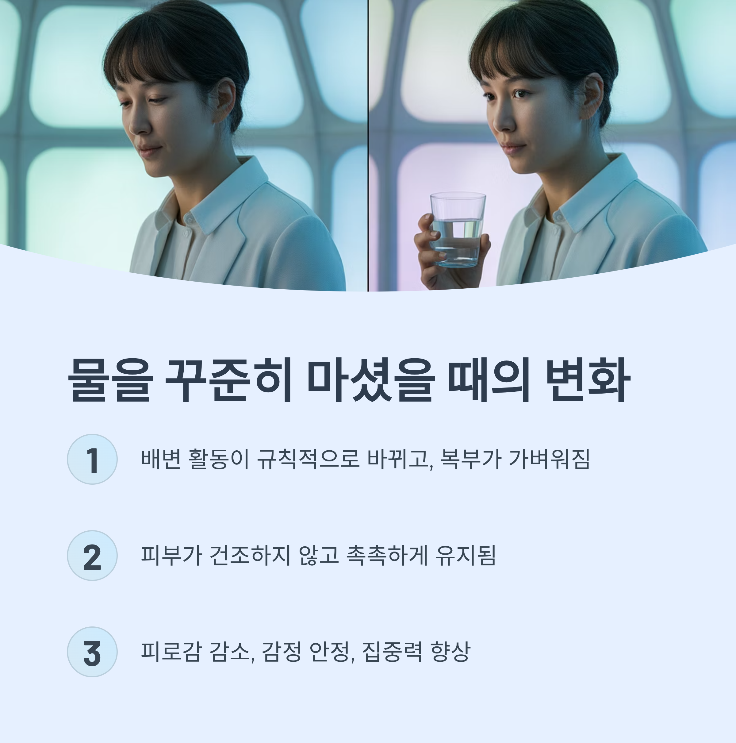 정해진 수치보다 ‘자주, 꾸준히’ 마시는 습관이 더 중요합니다. 몸 상태에 따라 유동적으로 조절하세요.