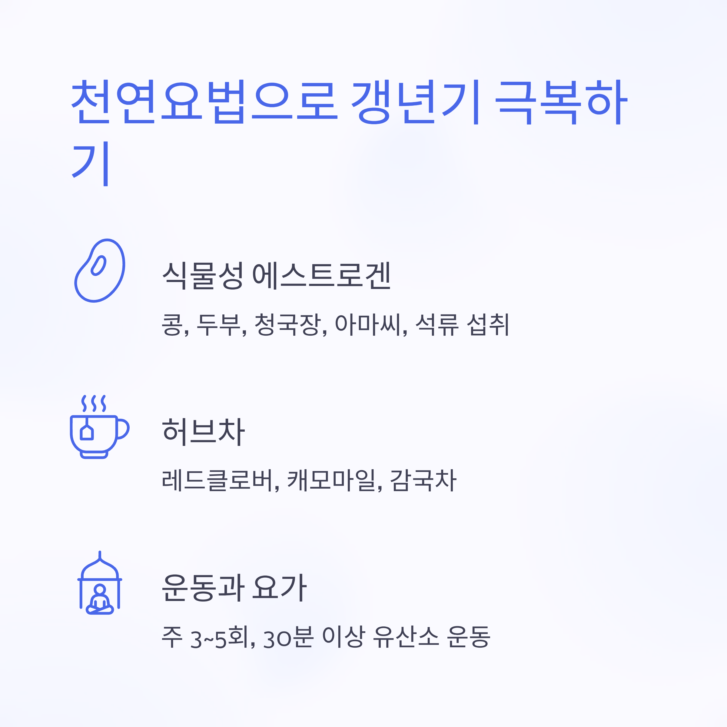 여러분이 실천해 본 갱년기 극복 노하우나 천연요법이 있다면 댓글로 나눠주세요. 서로의 이야기가 또 다른 누군가에게 힘이 될 수 있습니다.