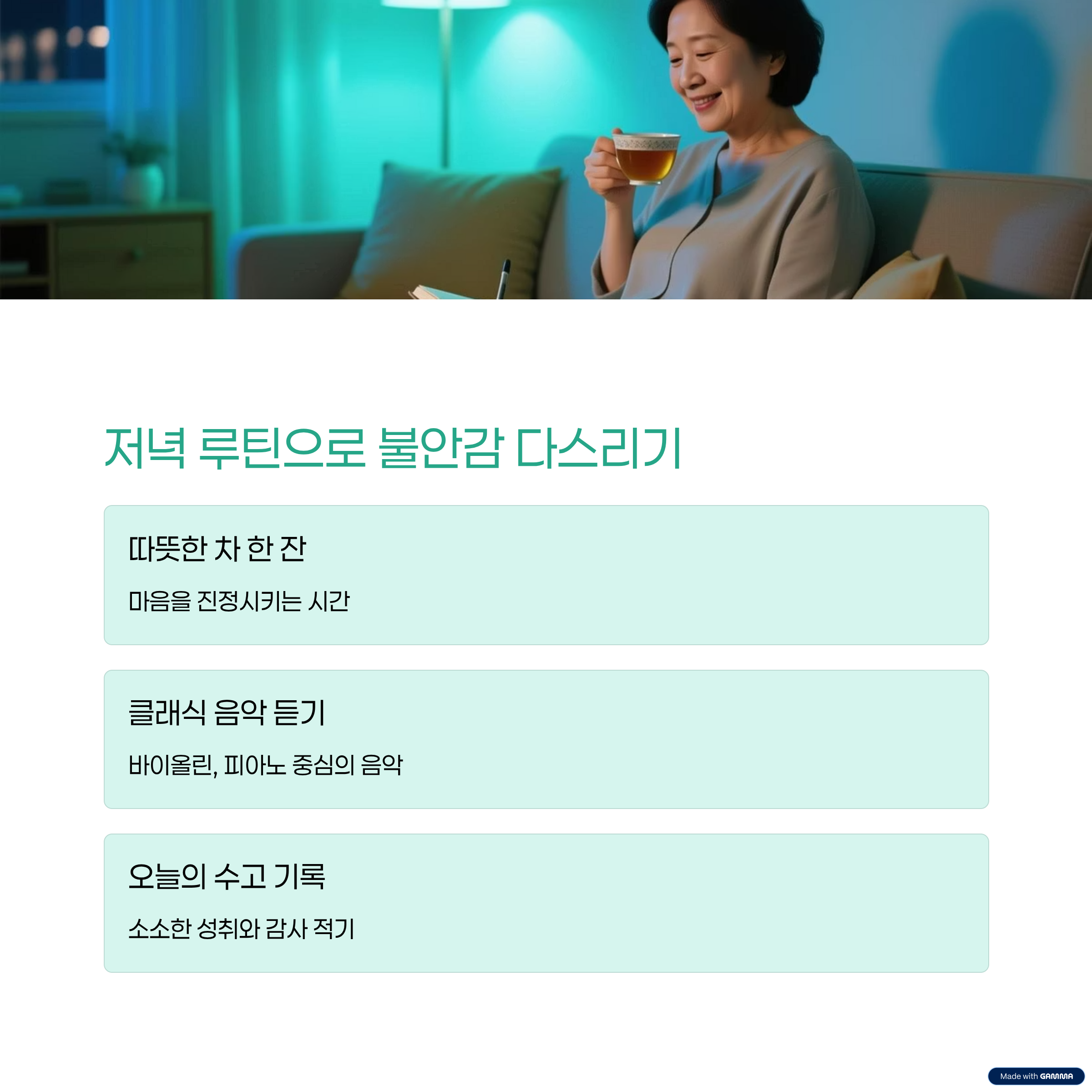 심리적 변화가 많은 시기인 만큼, 루틴은 마음을 지지해 주는 안전망 역할을 해줍니다. 작지만 규칙적인 실천이 감정의 안정에 큰 도움이 됩니다.