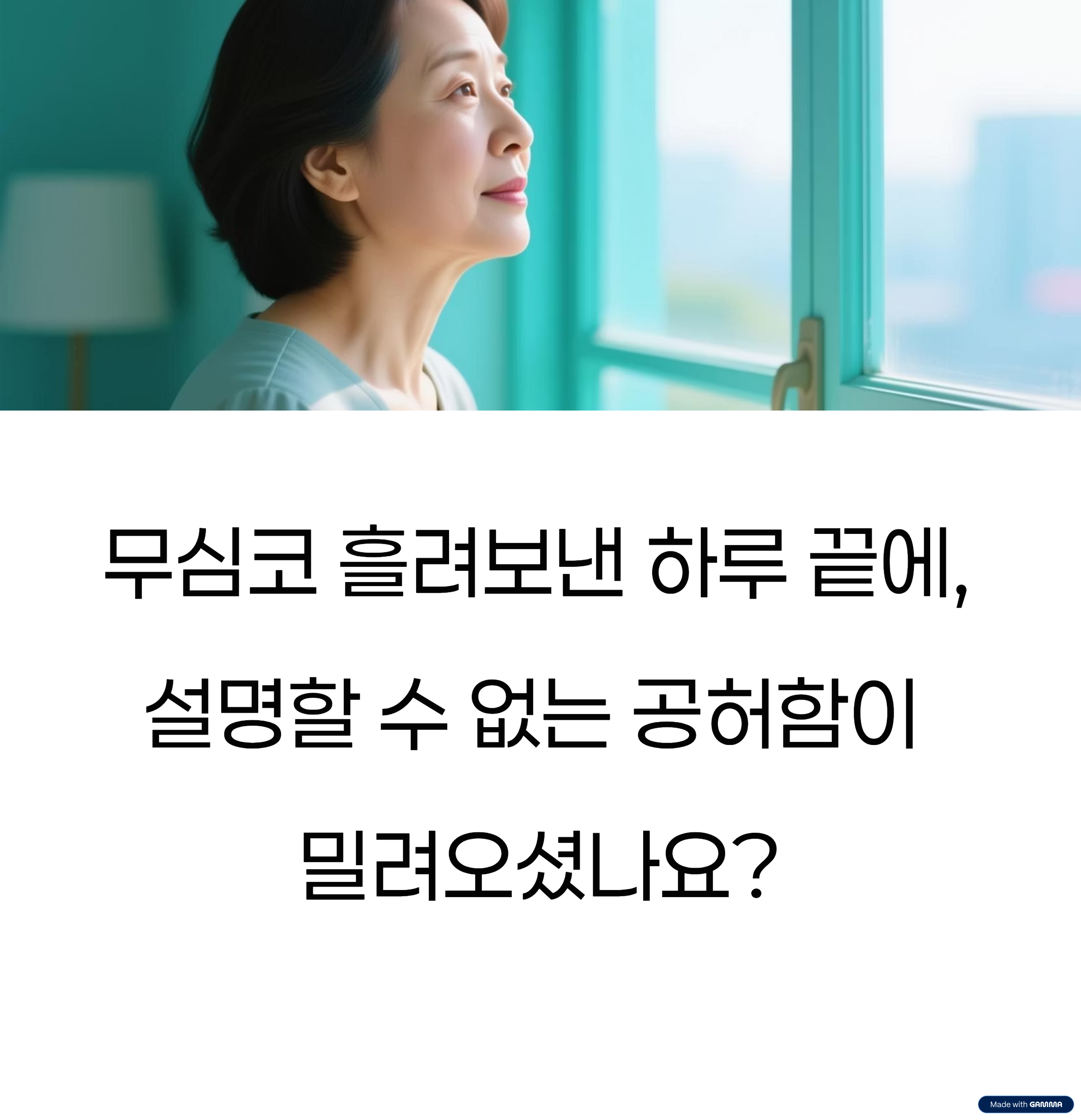 무심코 흘려보낸 하루 끝에, 설명할 수 없는 공허함이 밀려오셨나요? 그 감정, 결코 당신만의 것이 아닙니다.