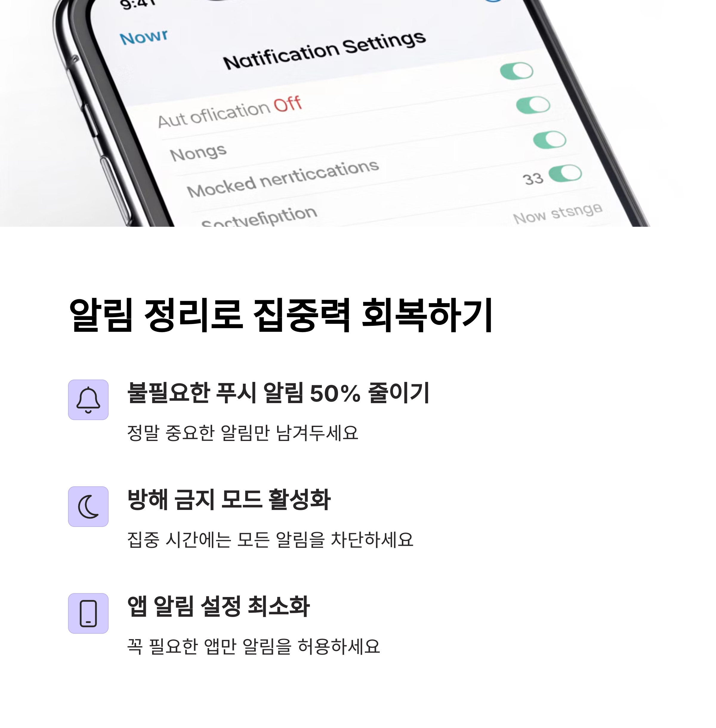 중요한 알림만 남기면 오히려 실수 없이 집중할 수 있어요. 꼭 필요한 정보는 반드시 눈에 띄게 됩니다.