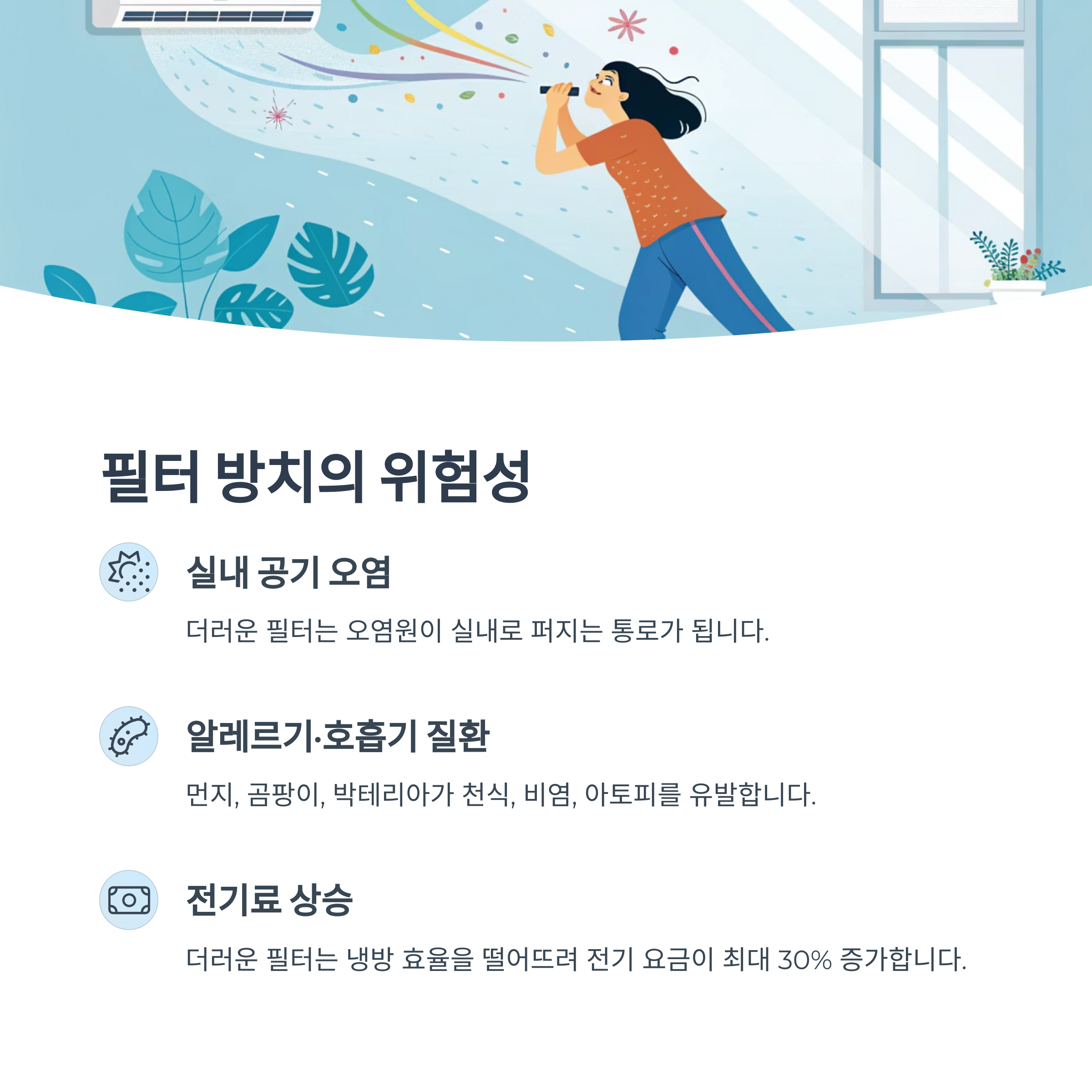 에어컨 켜자마자 코가 간질간질하고, 냄새가 찝찝하다면? 지금 당장 필터부터 점검해보세요!