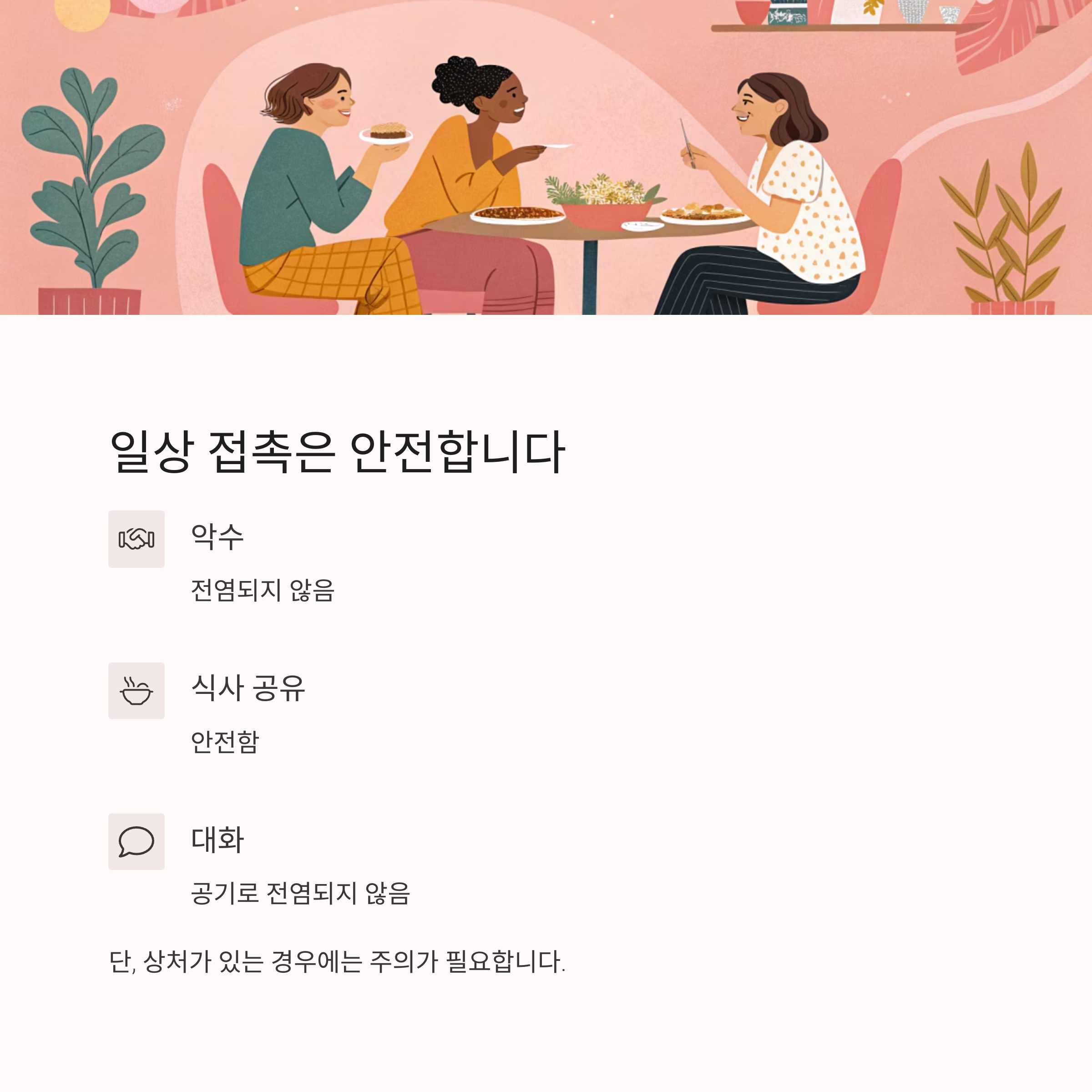 하지만 일상생활에서 주의해야 할 전염 경로를 차단함으로써 충분히 예방이 가능합니다.