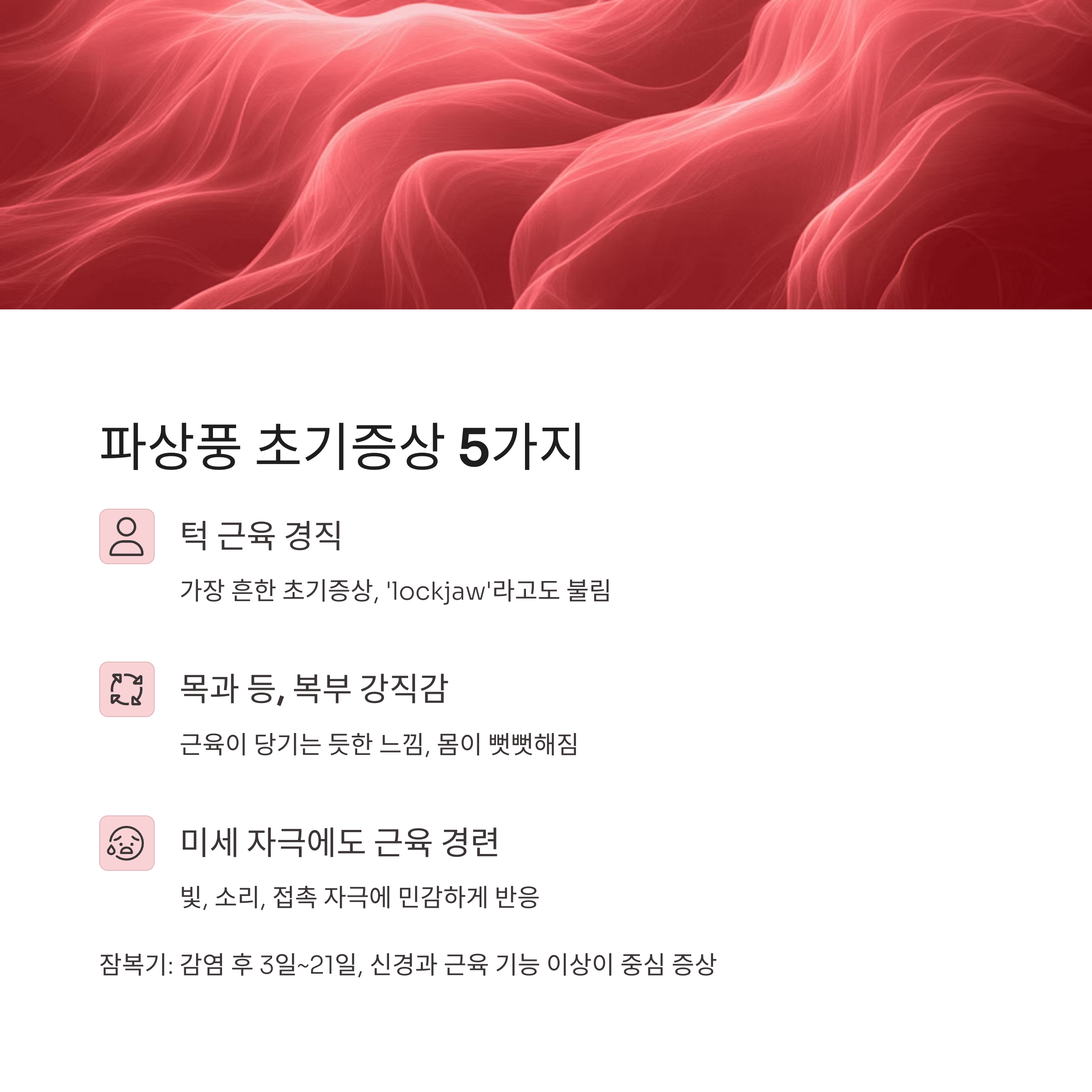 **핵심: 파상풍은 단순 열감이나 통증이 아니라, 신경과 근육의 기능 이상이 중심 증상입니다.