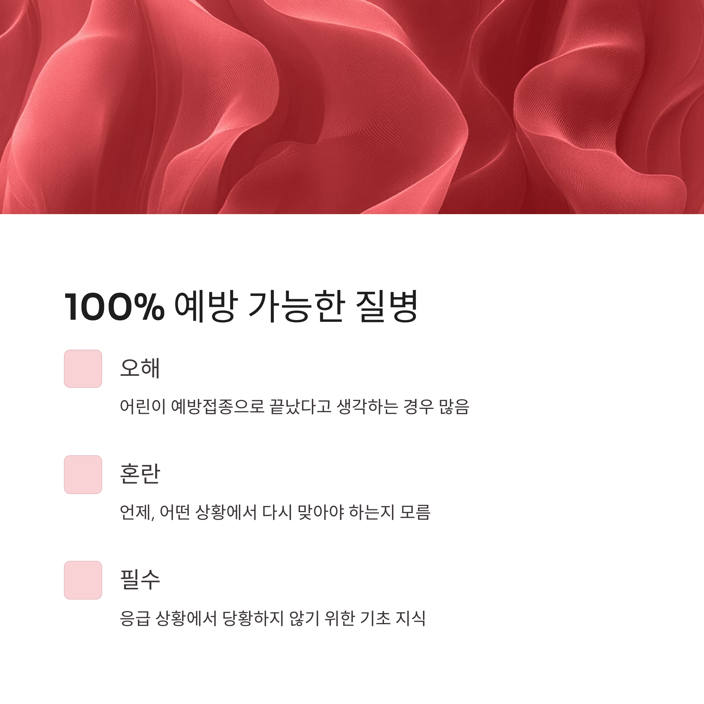 중요: 접종력 확인이 어렵다면, 10년 이상 지났을 경우 ‘맞은 것으로 간주하지 말고’ 재접종하는 것이 원칙입니다.