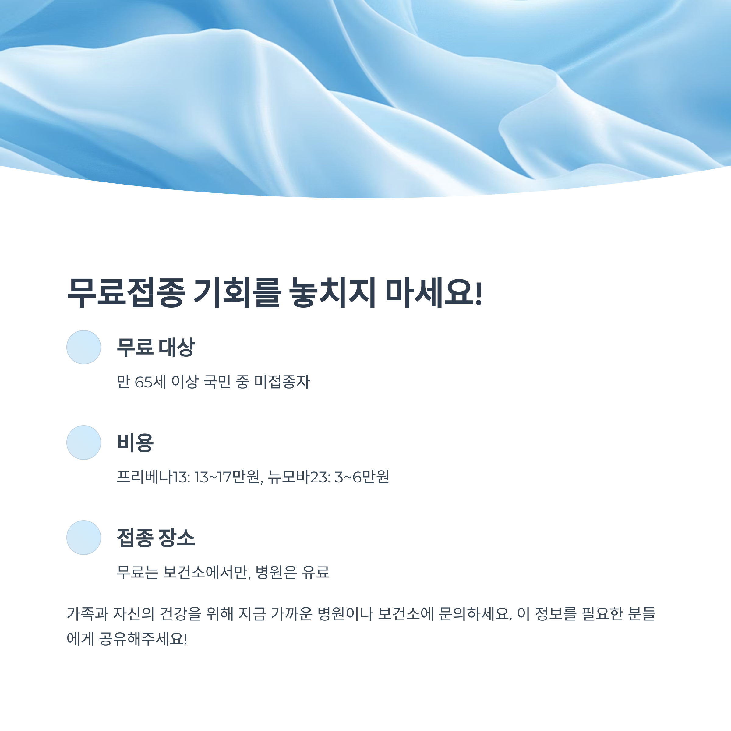 - 무료 대상: 만 65세 이상 국민 중 미접종자