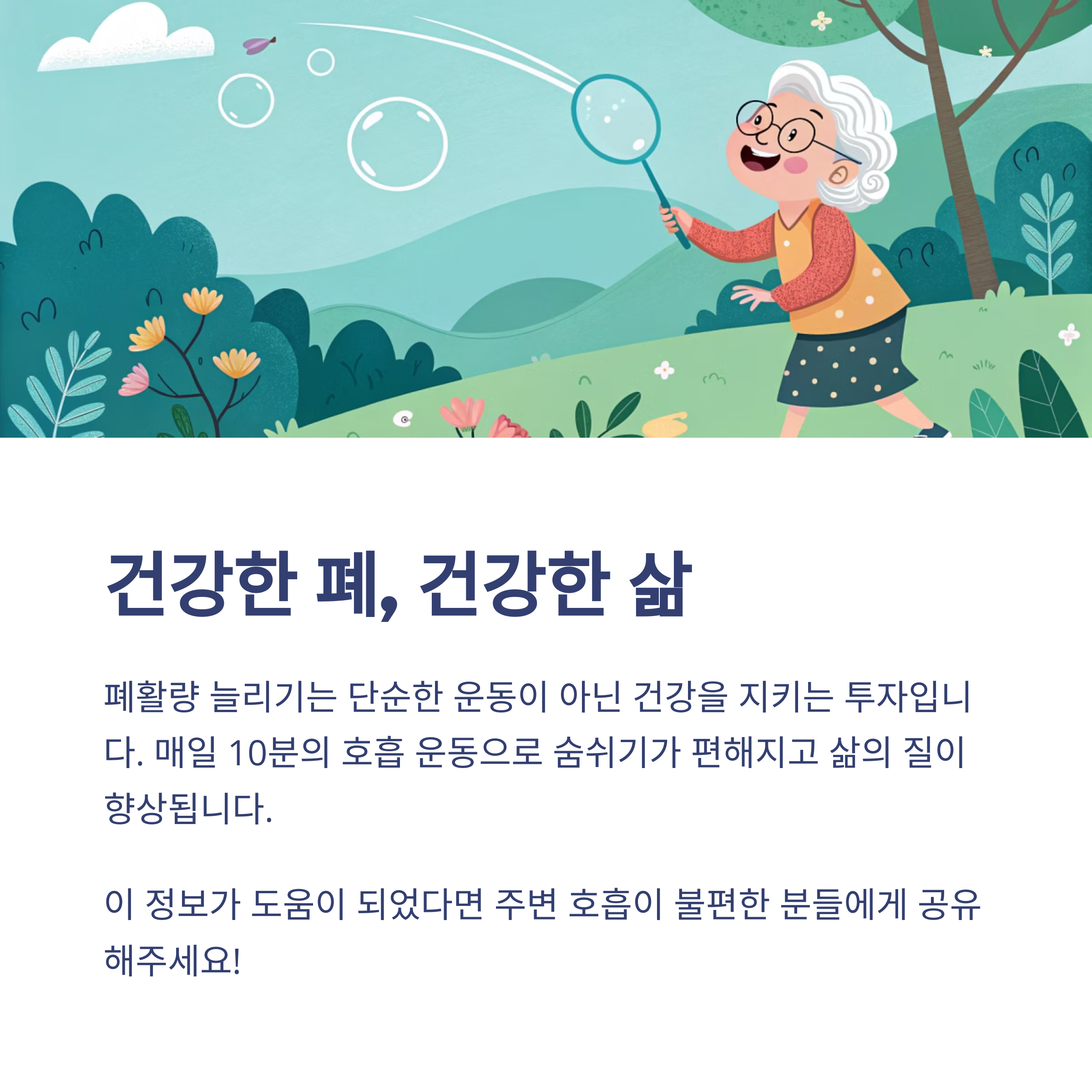 호흡은 우리가 무의식 중에 반복하는 생명의 기본입니다. 하지만 이 기본이 불편해지는 순간, 삶의 질은 급격히 낮아지게 되죠. 폐활량 늘리는 법은 단순한 운동이 아닌 건강을 지키는 투자입니다. 매일 10분, 폐기능을 생각하는 습관을 들이면 숨쉬기가 편해지고 일상의 여유도 되찾을 수 있습니다. 나이와 상관없이 시작할 수 있고, 지금 이 순간부터라도 늦지 않았어요. 건강한 숨, 오래가는 삶을 위해 오늘부터 실천해 보세요.