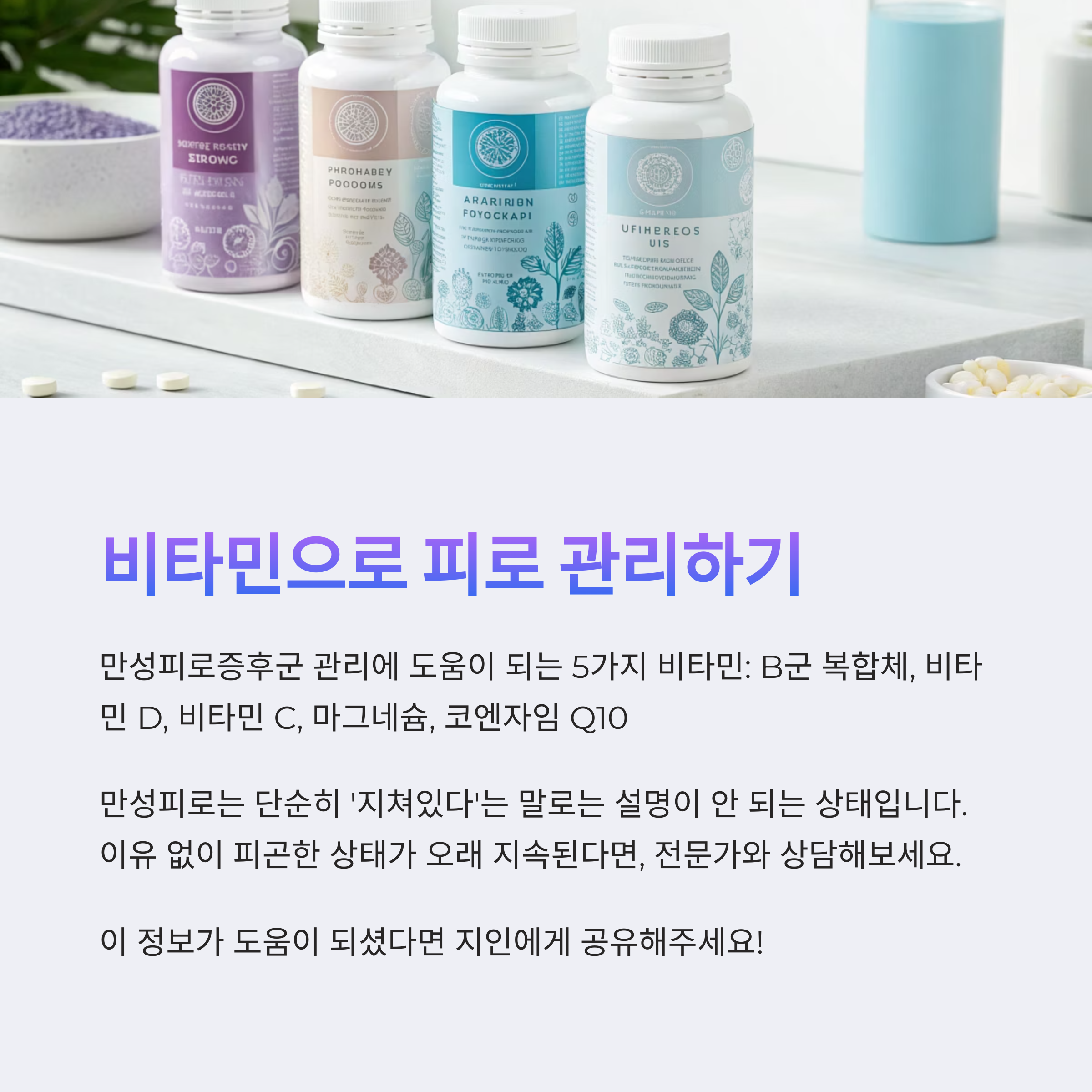 비타민은 회복을 돕는 보조 수단입니다. 충분한 휴식, 수면, 스트레스 관리와 함께 병행해야 효과적입니다.