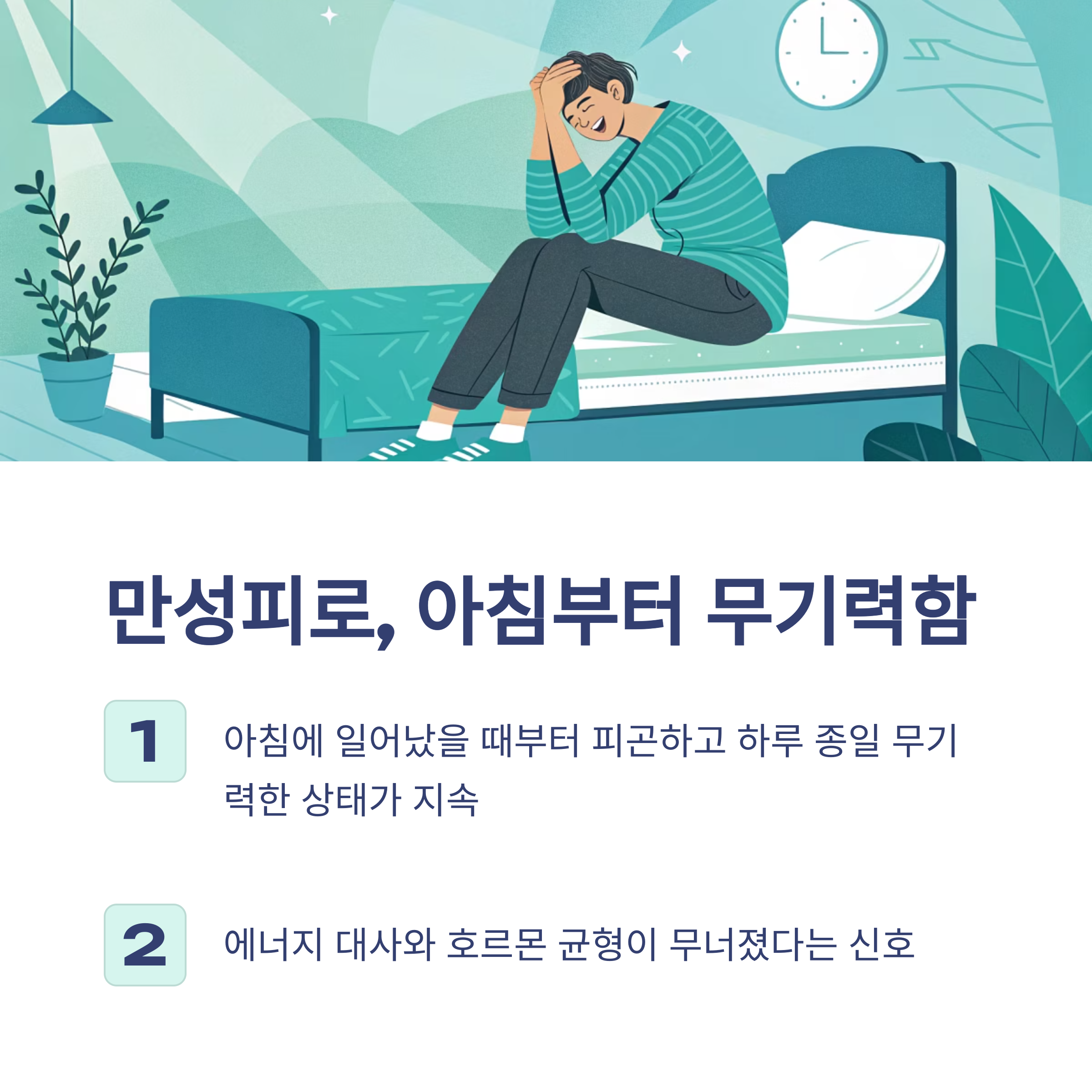 아침에 일어났을 때부터 피곤하고, 하루 종일 아무것도 하지 않아도 무기력한 상태가 계속된다면 이는 단순 피로가 아닌 만성피로일 수 있습니다. 만성피로는 몸의 회복 능력이 떨어져 있다는 신호로, 에너지 대사나 호르몬 균형이 무너졌다는 걸 암시하기도 해요. 피로가 쌓이면 뇌와 근육뿐 아니라 내장기관까지 영향을 받을 수 있기 때문에, 반드시 초기에 인지하고 조치를 취해야 합니다.