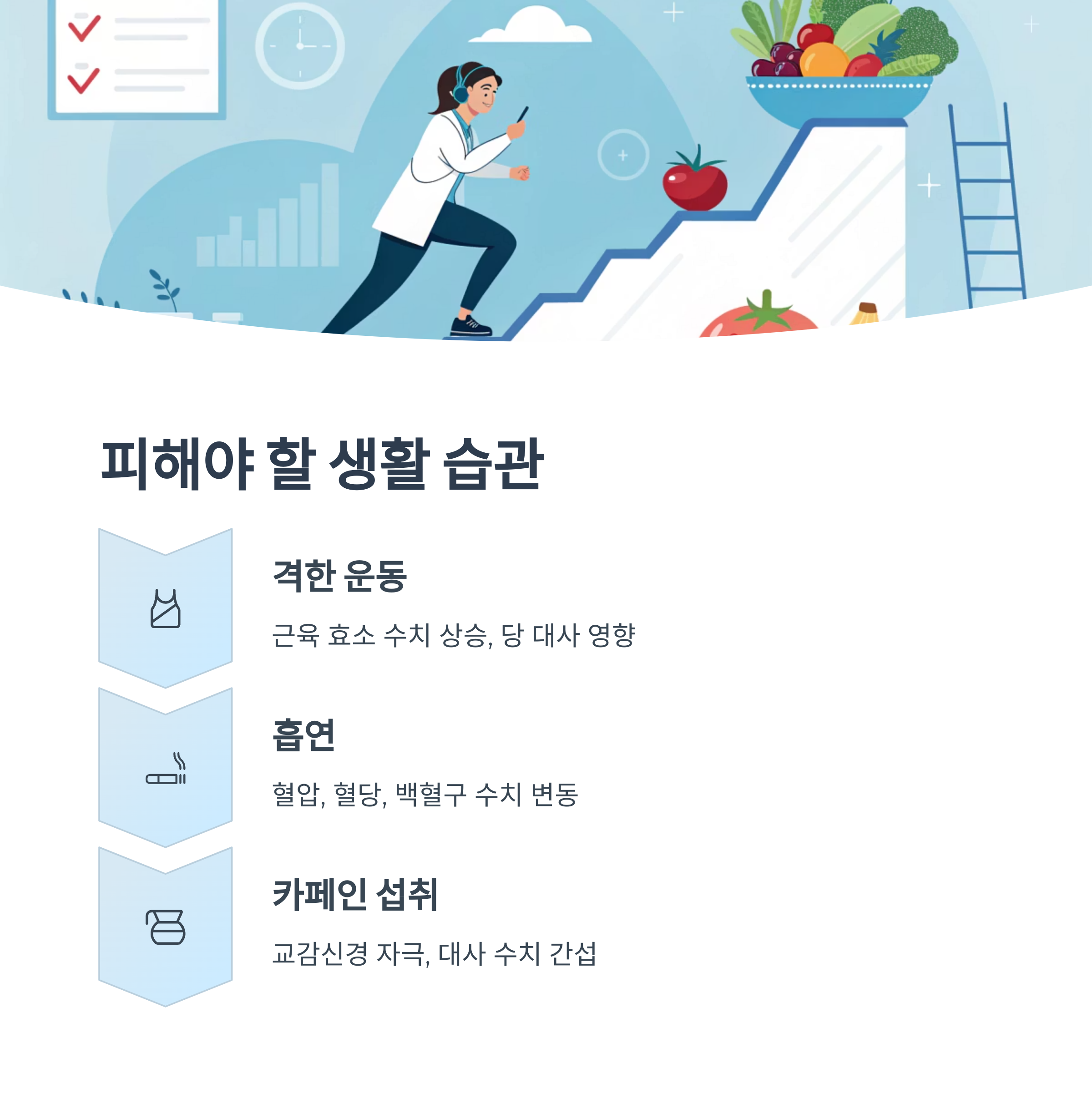 모두 혈액검사 결과에 직접적인 영향을 주는 요소입니다.