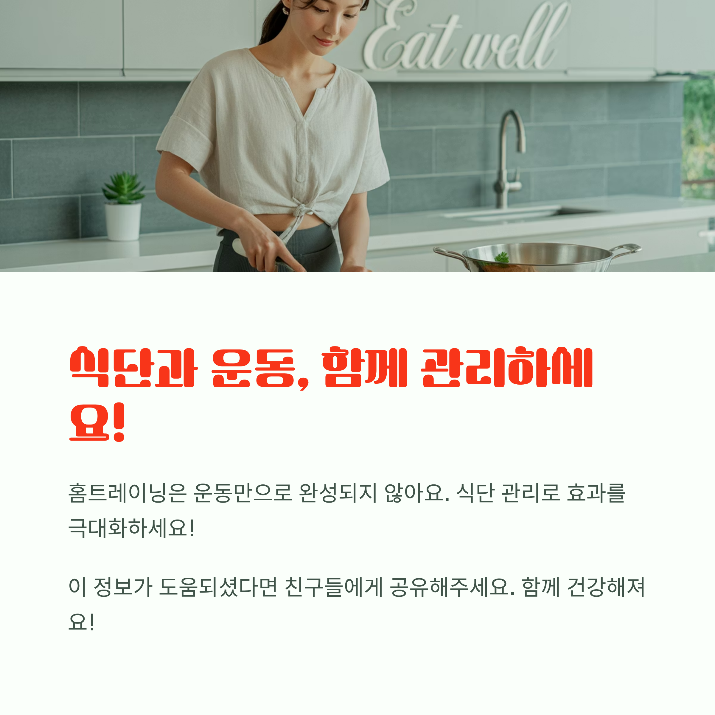 여러분, 홈트레이닝 꾸준히 하고 계신가요? 그런데 아무리 운동해도 몸이 기대만큼 안 변한다면, 그 이유가 ‘먹는 것’ 때문일지도 몰라요.