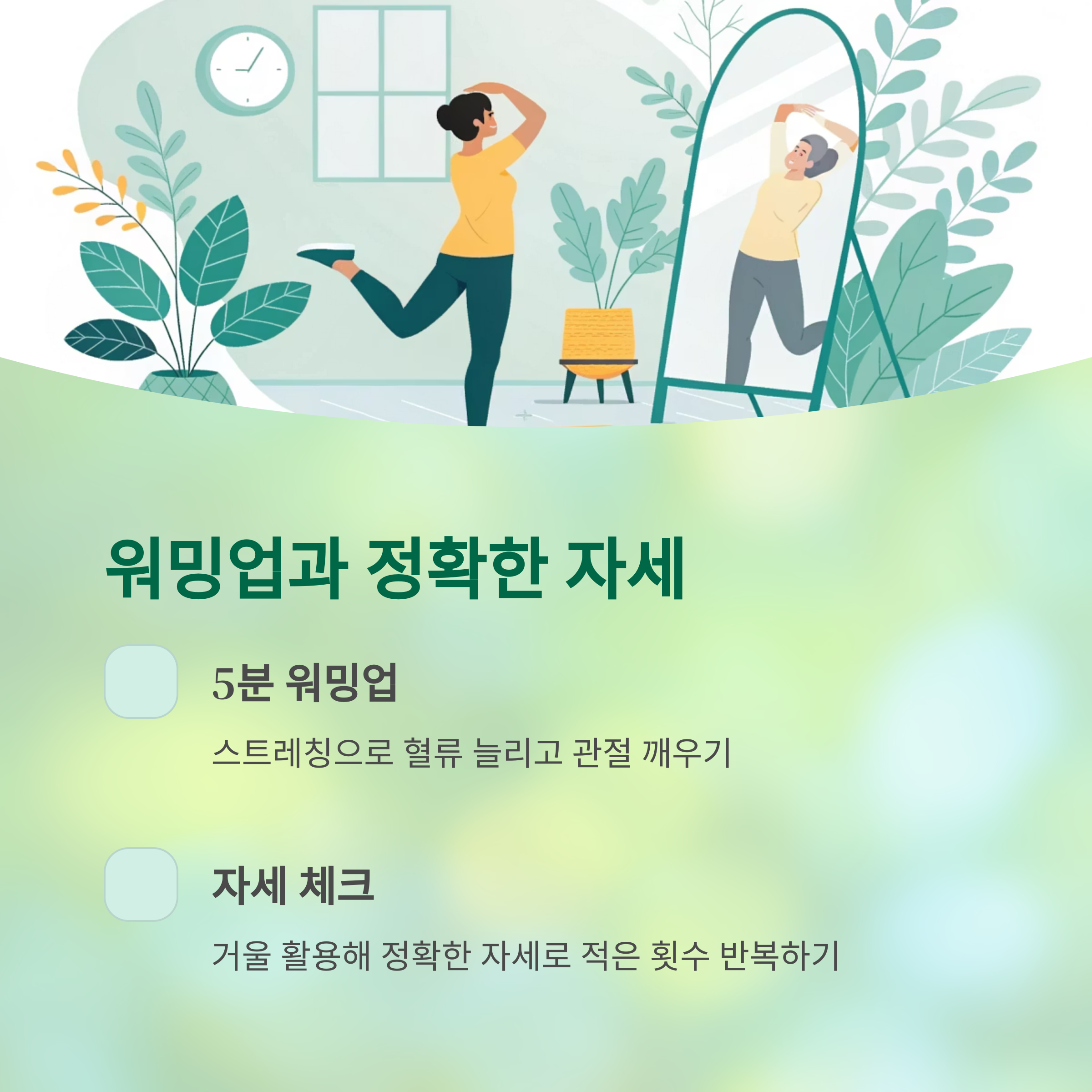 - 수면, 스트레칭, 충분한 수분 섭취 병행