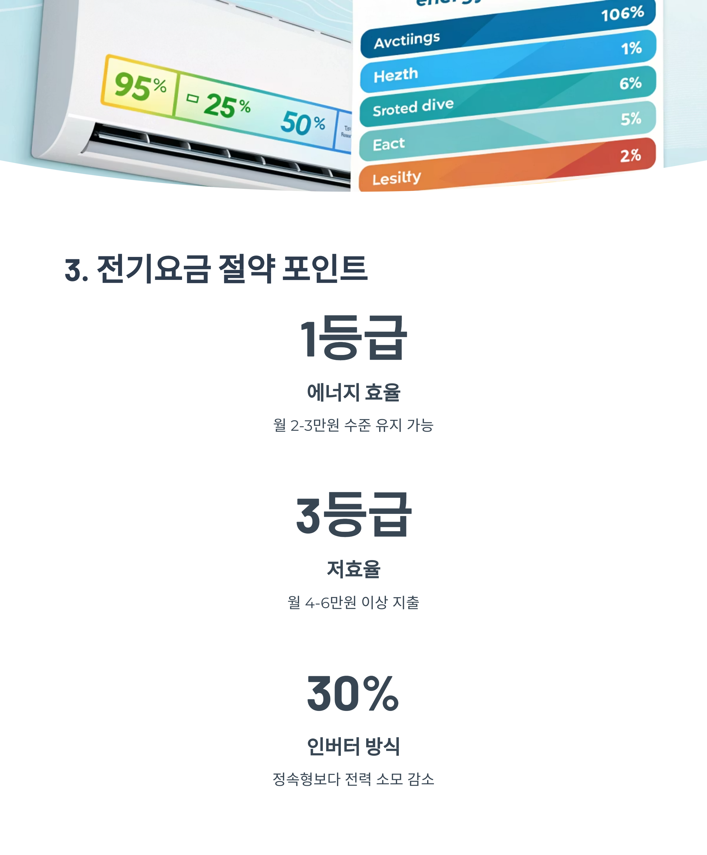 - 1등급 에어컨: 월 2~3만원 수준 유지 가능