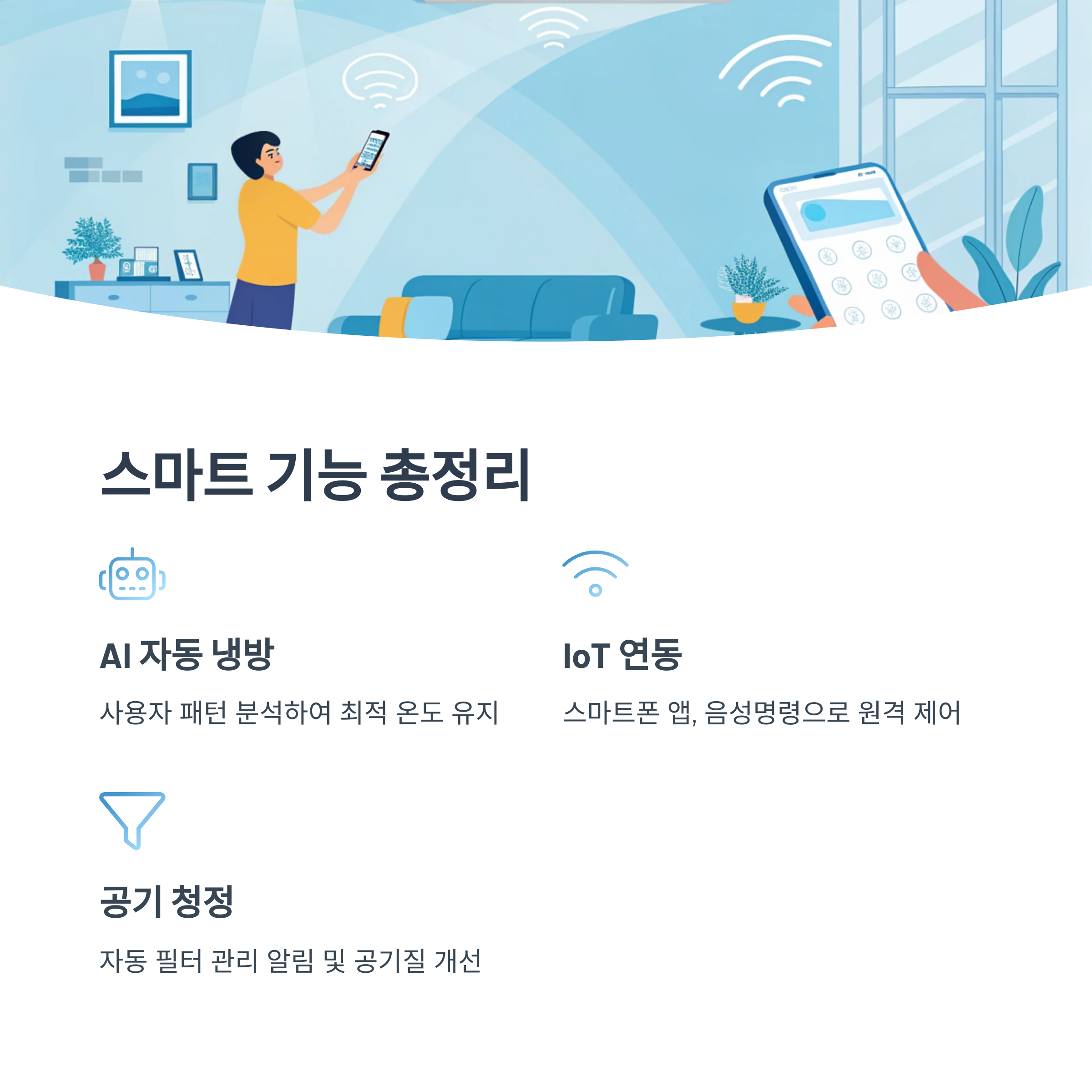 이제 에어컨도 스마트폰처럼 똑똑해졌습니다. 2025년형 에어컨에 꼭 들어간 스마트 기능들을 정리해 봤어요.