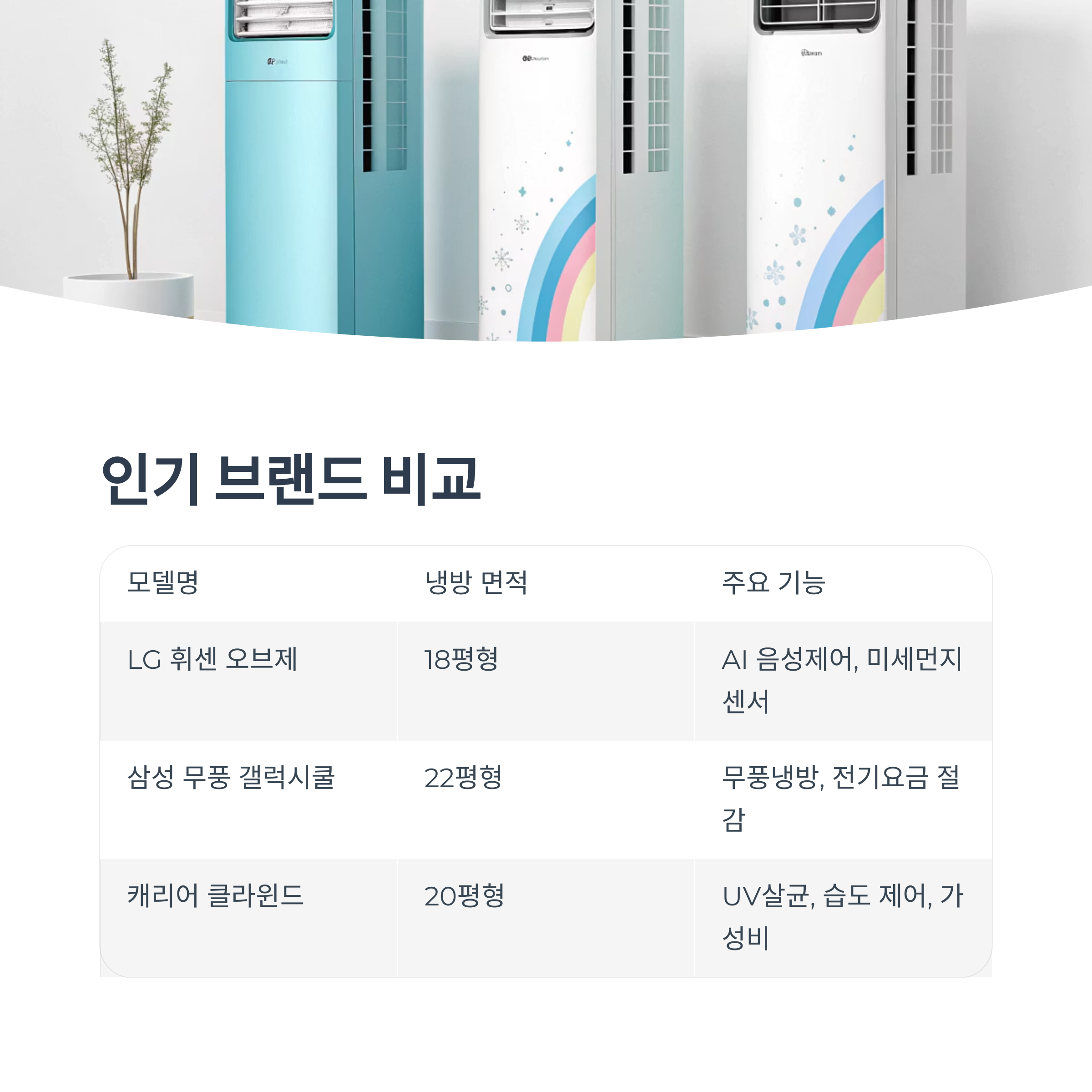 | 모델명 | 냉방 면적 | 주요 기능 |