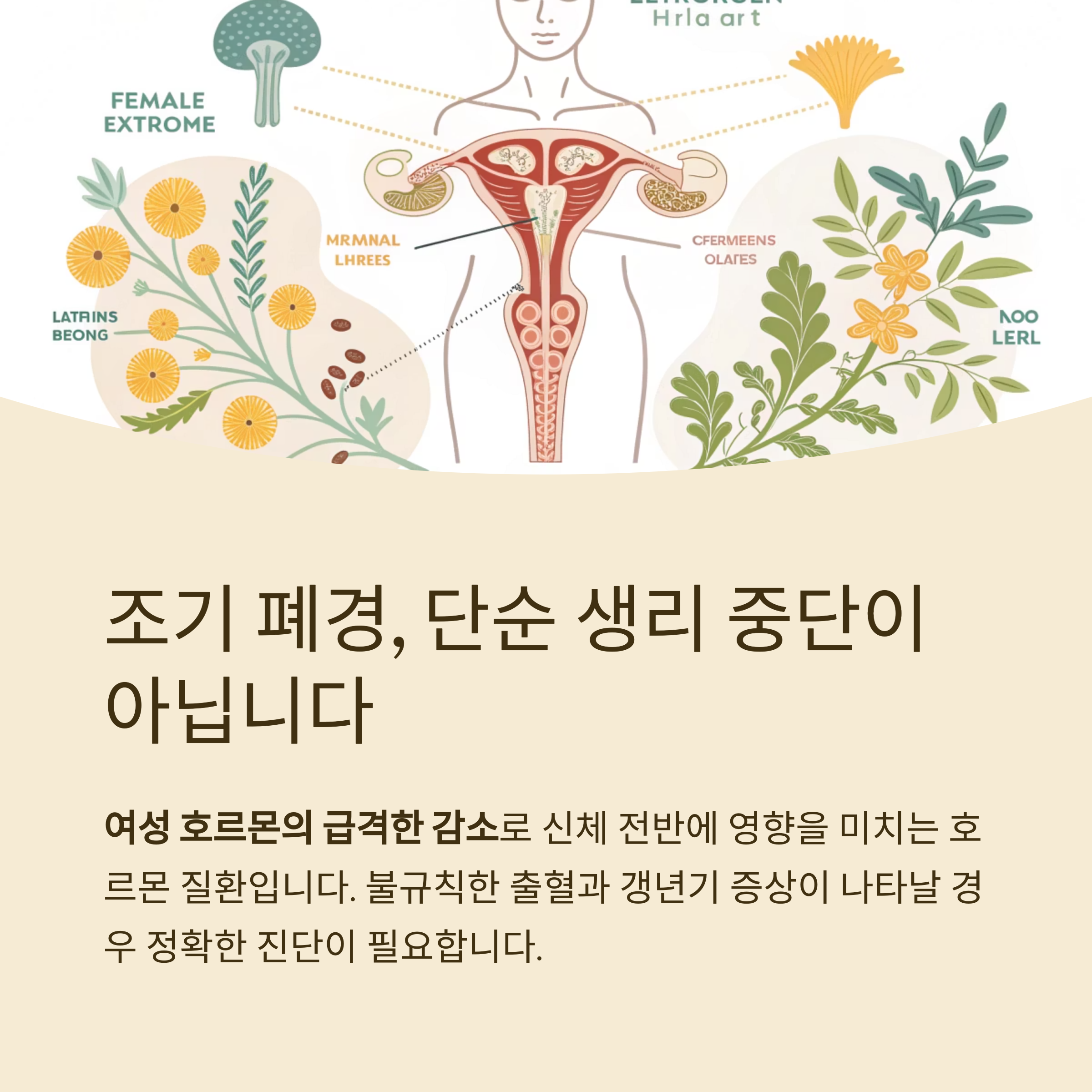 조기 폐경은 단순한 생리 중단이 아니라, 여성 호르몬의 급격한 감소로 인해