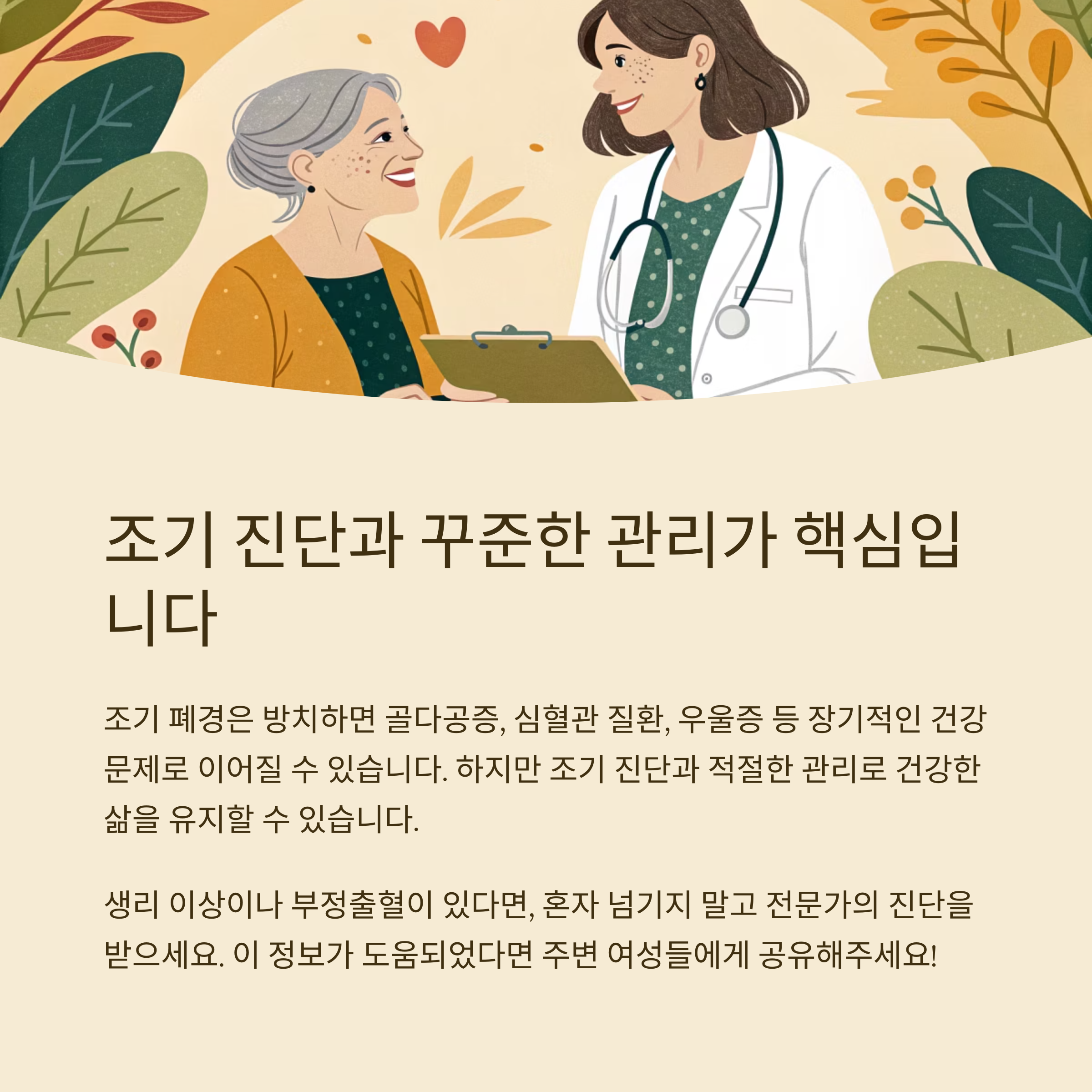 결론: 조기 폐경, 조기 진단과 꾸준한 관리가 건강의 핵심입니다