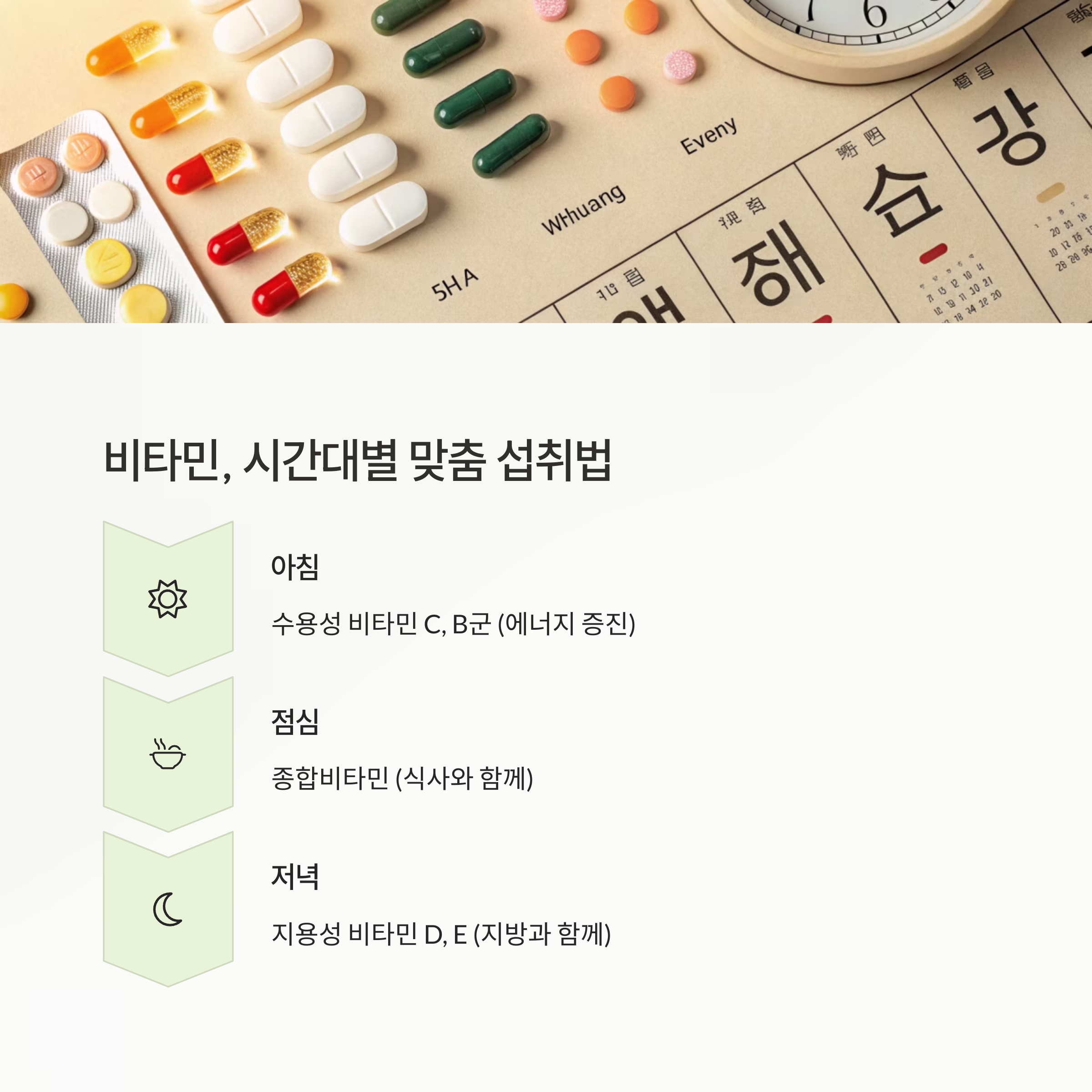 비타민별 섭취 타이밍과 궁합 정리표