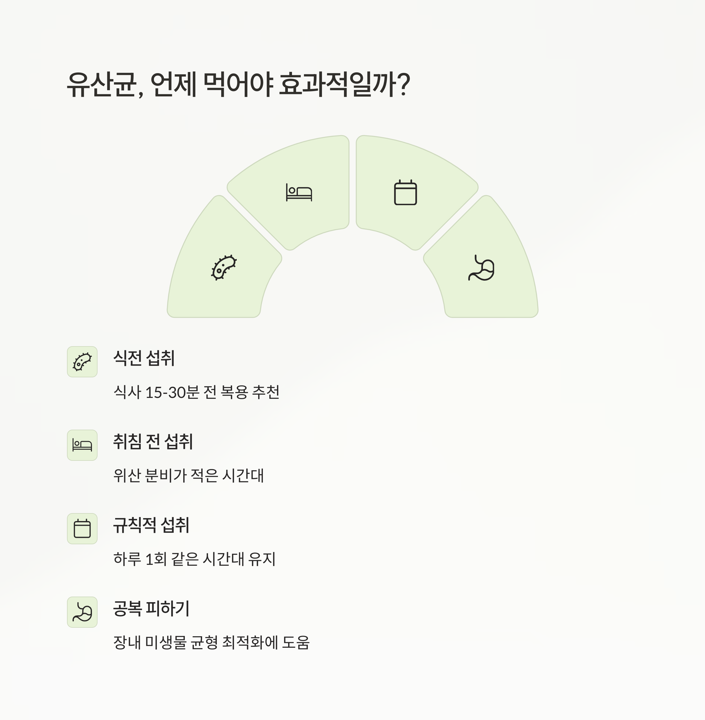 유산균은 장까지 살아서 도달해야 의미가 있잖아요. 그런데 잘못 먹으면 위산에 다 죽어버릴 수도 있어요. 그래서 다음 몇 가지 팁은 꼭 기억해 두세요.