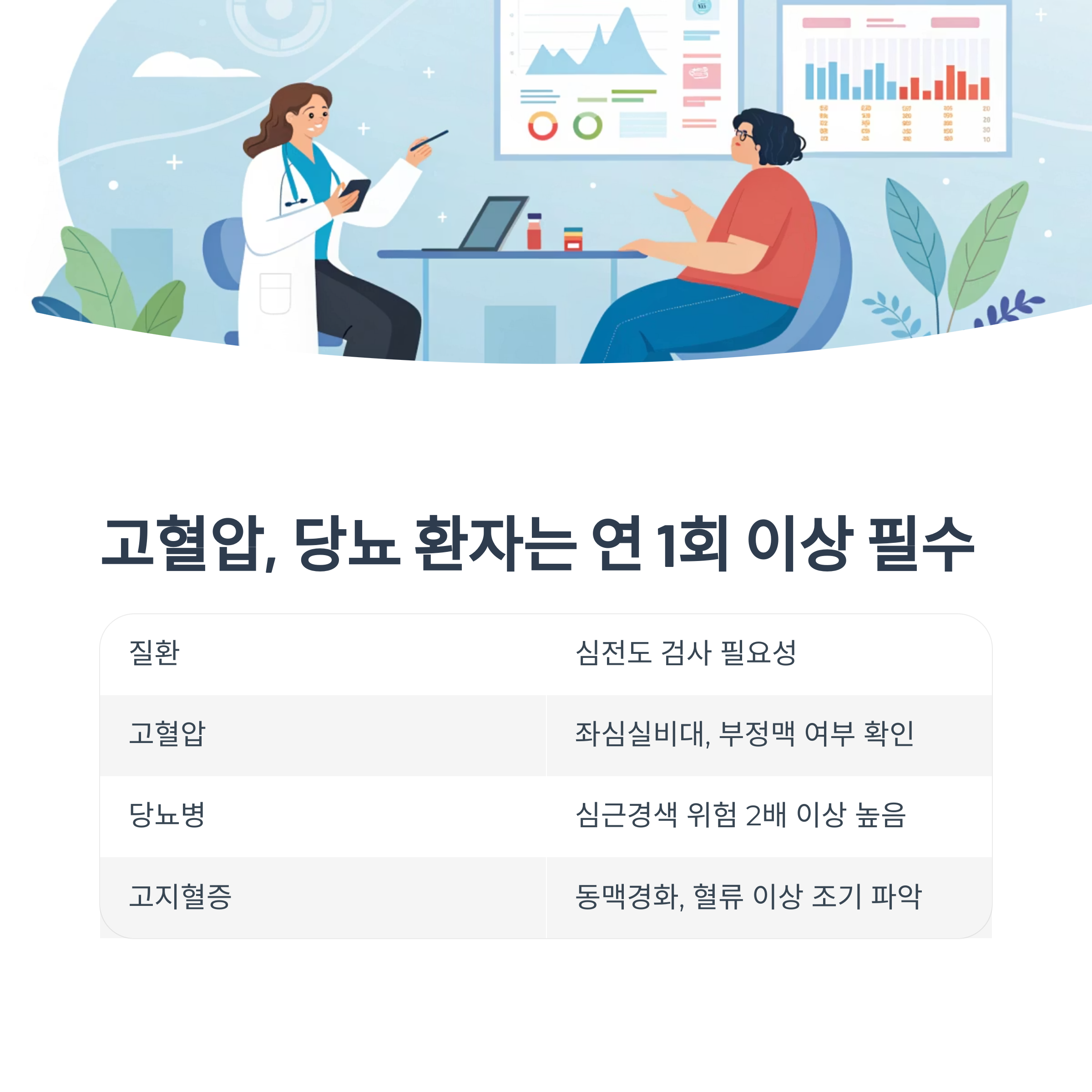 2. 고혈압, 당뇨 환자라면 연 1회 이상 필수 검사입니다