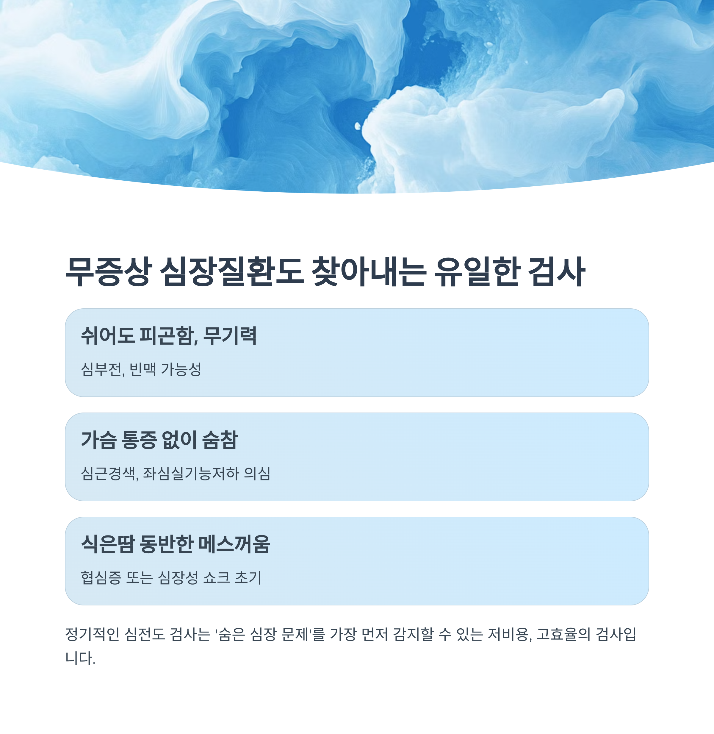 결론: 지금 무증상이어도 심전도 검사는 '미리' 받는 것이 건강한 선택입니다