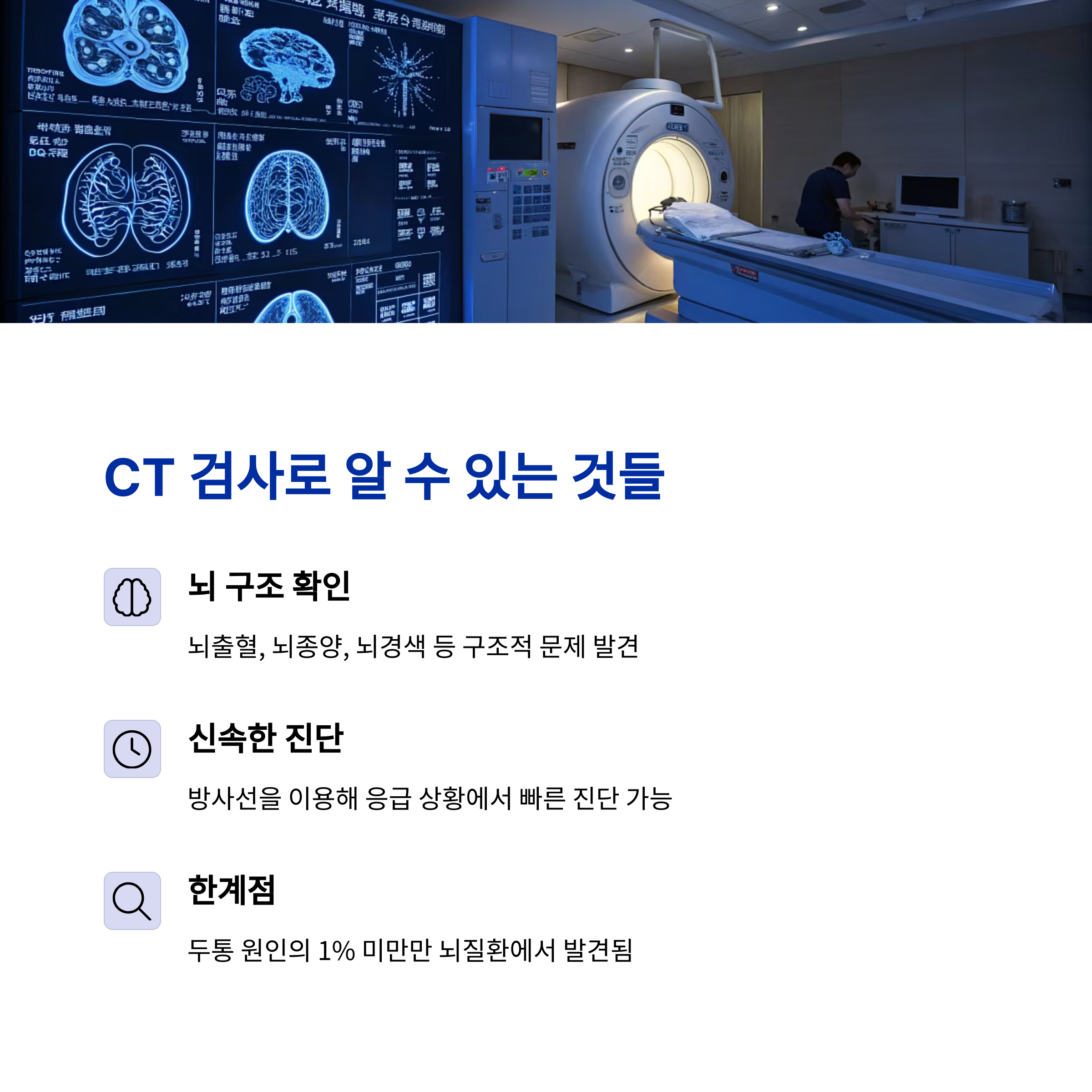 두통 진단에서 CT 검사로 얻을 수 있는 정보